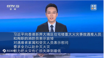 11月26日下午,香港新界大埔屋邨宏福苑多栋住宅楼发生火灾,造成重大人员伤亡。图片来源视频截图事故发生后,中共中央总书记、国家主席、中央军委主席习近平高度重视,第一时间了解火灾救援和人员伤亡等情况,指示中央政府驻香港联络办负责人向香港特区行政长官李家超转达…