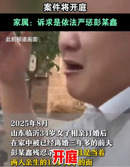 2025年8月,临沂,34岁女子在家中被已经离婚三年多的前夫彭某鑫残忍杀害,并且是当着两人亲生的11岁儿子的面,该案件曾引发社会关注。图片来源视频截图2026年1月19日,被害女子的弟弟来先生告诉记者,他们收到了临沂市中级人民法院的传票,将于1月23日上午9点开庭,案由为…