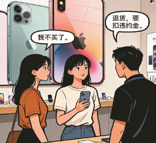 (漫画由AI生成 周蔚制作)◆为了吸引客户,范某在多个短视频平台发布虚假广告,以超低价吸引消费者到线下手机店购买手机。◆消费者交付手机款后,店员以手机更新系统需额外支付高额费用等为由,引导消费者提出退款要求。◆如果要退款,店员以要扣除20%的违约金、退货地点不在本…