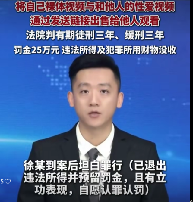 据媒体报道,1998年出生的徐某原为湖南祁东某职业中专女教师。2023年9月起,她通过微信群发“闪照”引流,吸引男性互加微信好友。之后,被告人徐某将其本人拍摄的裸体视频及其与他人的性爱视频,以人民币199元、299元的价格,通过发送微信链接的方式出售给伏某、王某等人…