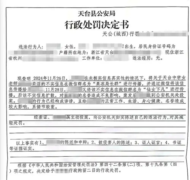 近日,浙江杭州一女教师在3个人的微信群聊天,因诽谤他人被台州警方拘留一事,有了新进展。女教师将天台县公安局告上法庭,要求撤销天台县公安局于2024年12月24日作出的《行政处罚决定书》、判令被告依国家规定的标准赔偿原告被拘留期间的经济损失,并向其赔礼道歉。该案…