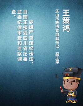 国普网四川讯:据四川省纪委监委消息,乐山市政协党组副书记、副主席王策鸿涉嫌严重违纪违法,目前正接受四川省纪委监委纪律审查和监察调查。王策鸿简历王策鸿,男,汉族,1966年8月生,四川眉山人,省委党校在职研究生学历。1986年7月参加工作,1997年12月加入中国共产党…