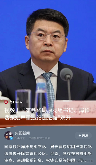 国普网讯:经中共中央批准,中央纪委国家监委对第二十届中央候补委员,交通运输部原党组成员,国家铁路局原党组书记、局长费东斌严重违纪违法问题进行了立案审查调查。经查,费东斌丧失理想信念,背弃初心使命,政治意识淡漠,搞投机钻营,结交政治骗子,对抗组织审查;违…
