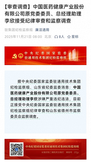 国普网讯:“据”“廉洁通用”11月21日官微通报:中国医药健康产业股份有限公司原党委委员、总经理助理李欣涉嫌严重违纪违法,目前正接受中央纪委国家监委驻通用技术集团纪检监察组纪律审查和山东省德州市监察委员会监察调查。根据公开信息,李欣出生于1962年,中共党员,…