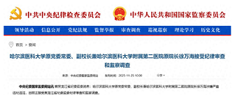 中央纪委国家监委网站11月25日通报,据黑龙江省纪委监委消息:哈尔滨医科大学原党委常委、副校长兼哈尔滨医科大学附属第二医院原院长徐万海涉嫌严重违纪违法,目前正接受黑龙江省纪委监委纪律审查和监察调查。编辑:建君